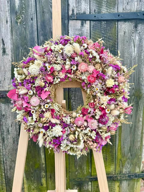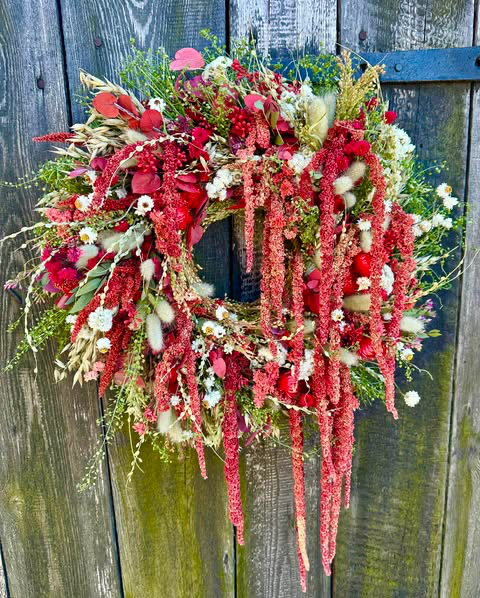 Wyjątkowy wianek z zwisającym, stabilizowanym, czerwonym szarłatem. Wianek wykonany jest z suszonych i stabilizowanych roślin. Utrzymany w kolorystyce czerwono - zielonej z białymi akcentami. Wianek ten będzie oryginalną i wyjątkową ozdobą Twojego domu. Pozwól się oczarować suszonym kwiatom. Wianki z suszonych i stabilizowanych roślin nadają się do zawieszenia zarówno wewnątrz domu jak i na zewnątrz. Wewnątrz będą ozdobą na lata, na zewnątrz jedynie sezonową (2-4 miesięcy w zależności od warunków pogodowych). Suszone i stabilizowane rośliny „nie lubią” wilgoci, a przede wszystkim bezpośredniego działania słońca. Zapewnienie dekoracjom z suszonych/stabilizowanych roślin odpowiednich warunków jest kluczowym czynnikiem zapewniającym im piękny wygląd przez długi czas.